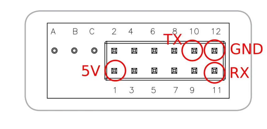 rx_pin connected to the TX pin of the device (pin 10) and the tx_pin connected to the RX Pin of the device (pin